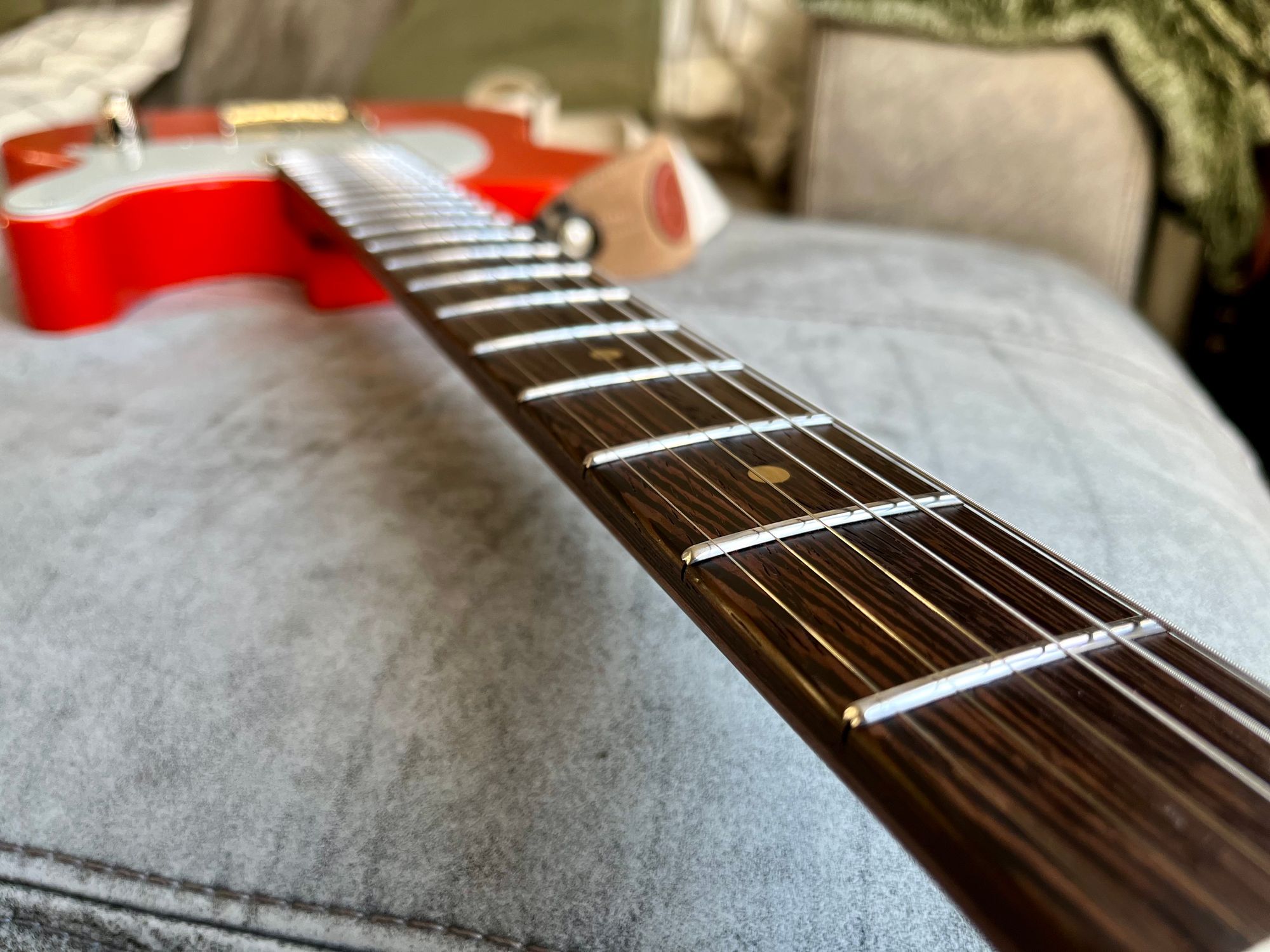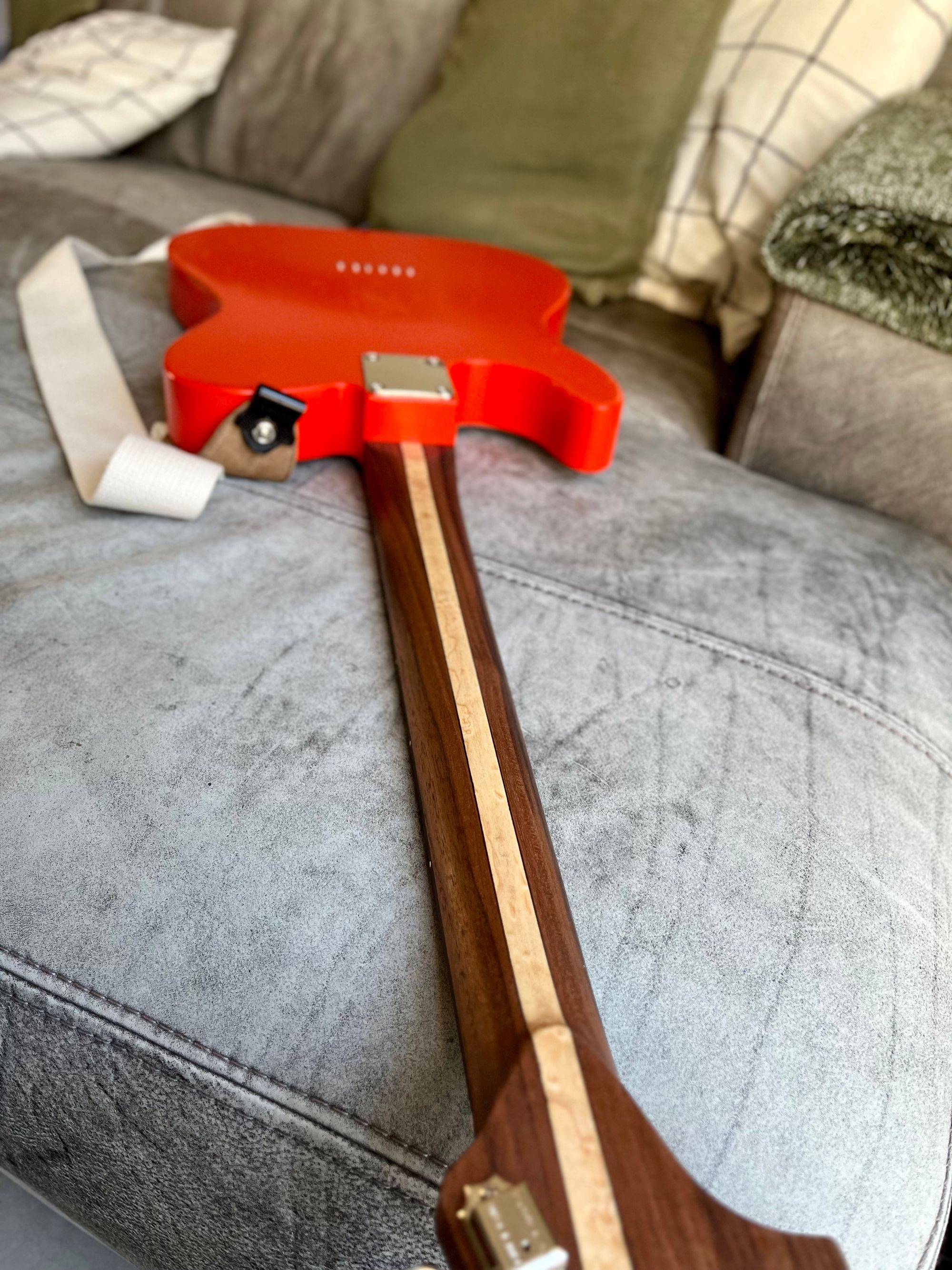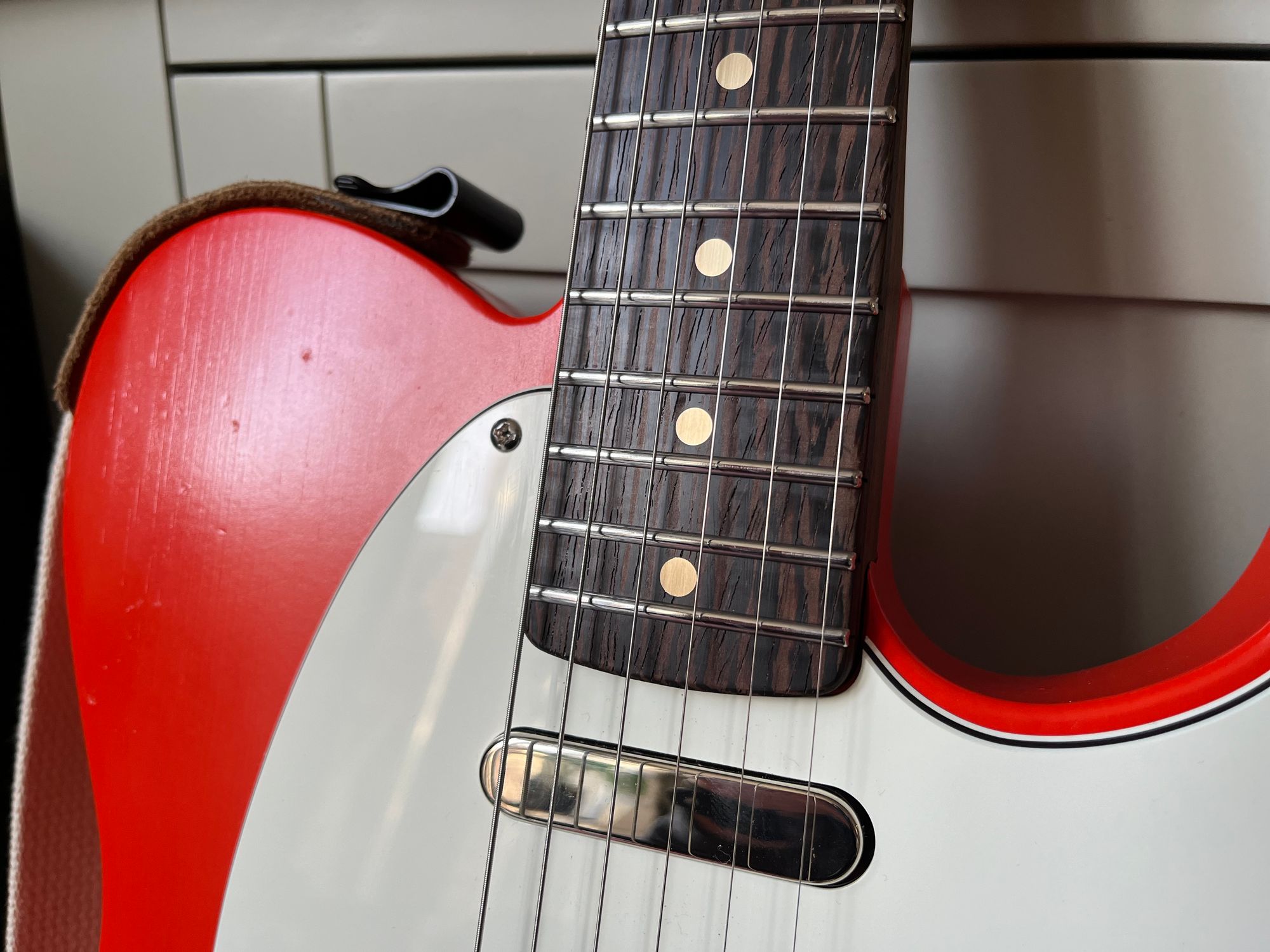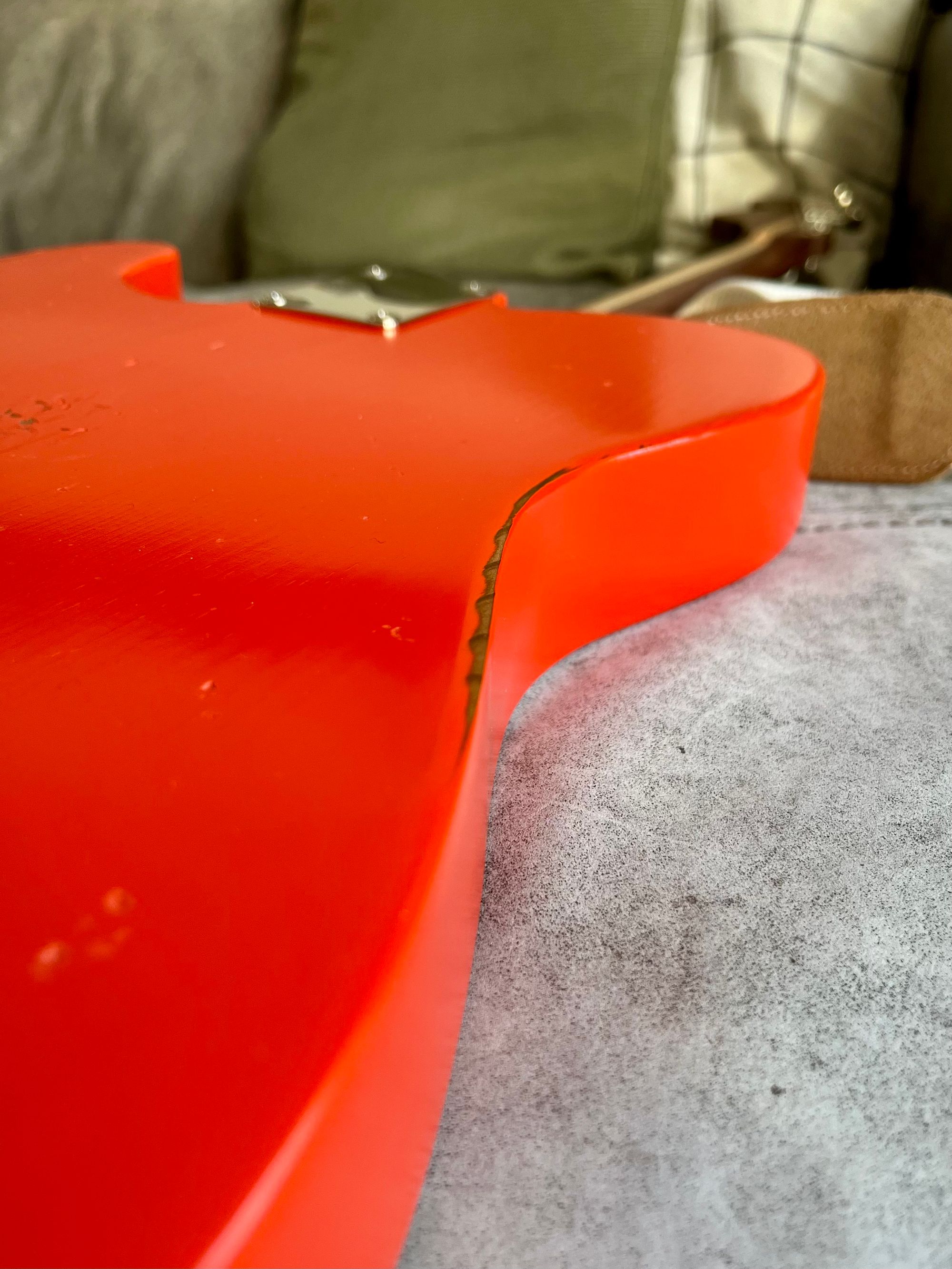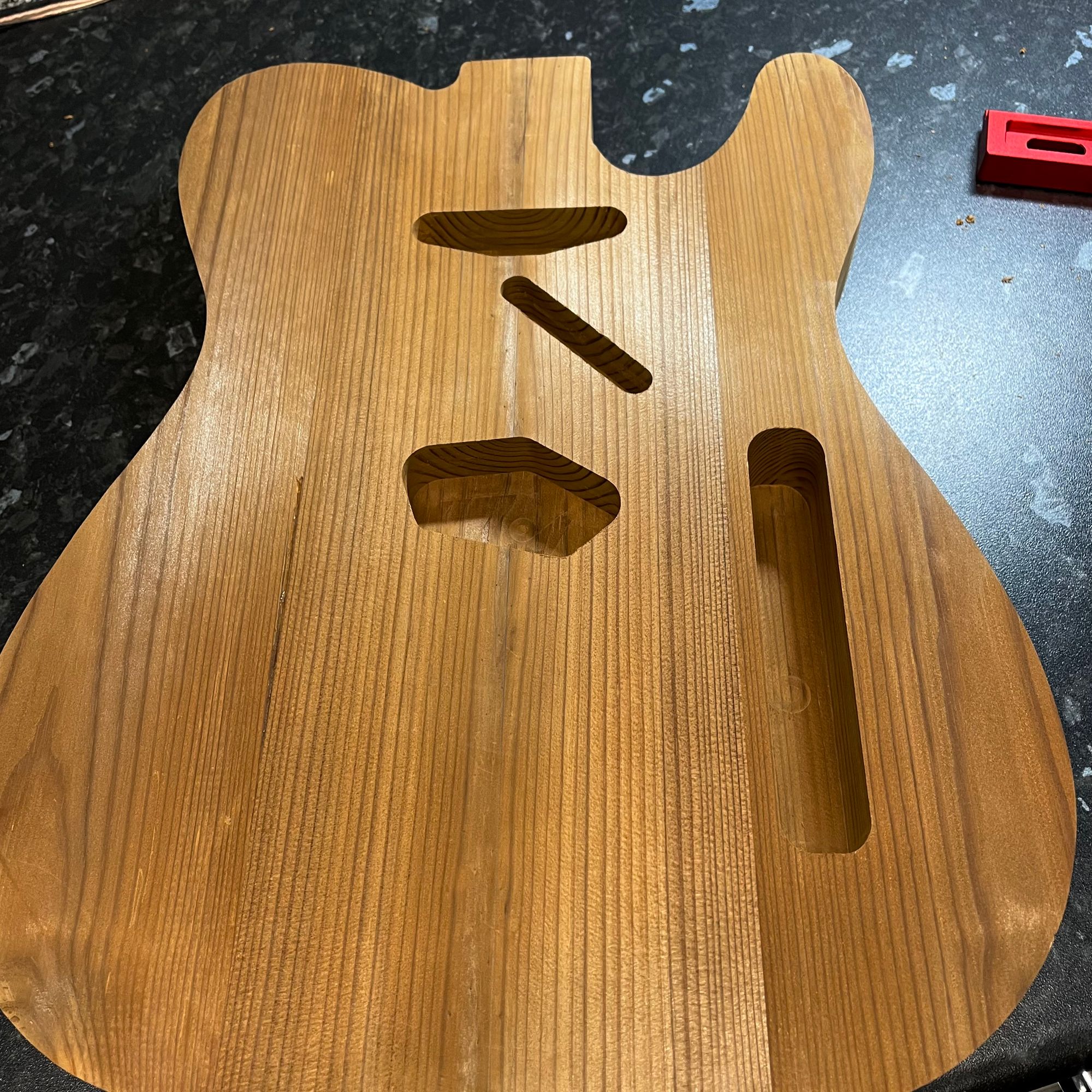 Body: Roasted pine, thin satin nitro, Fiesta Red, road-worn