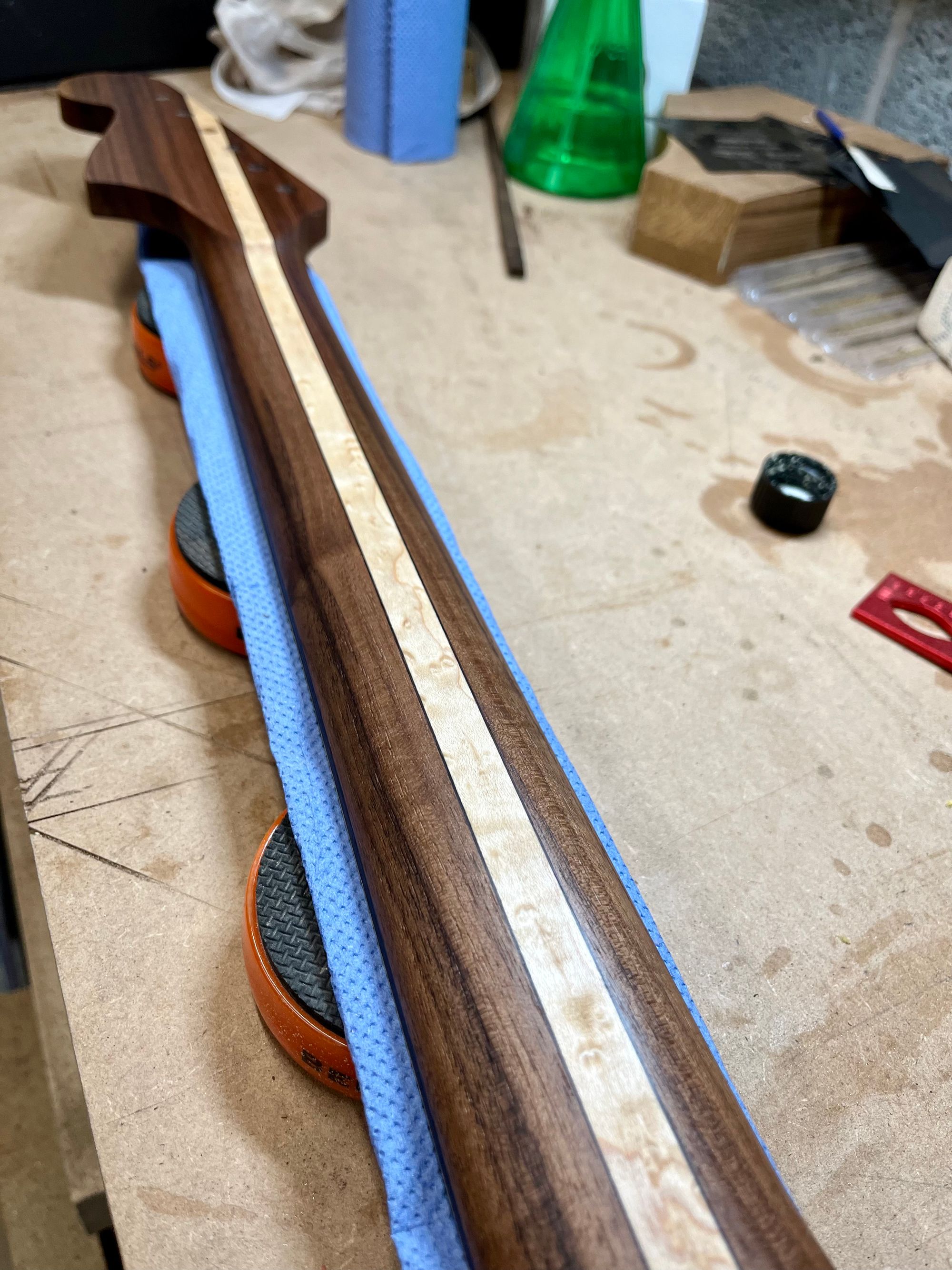 Neck: 5-piece walnut/maple/rosewood laminate, oil finish, bolt-on